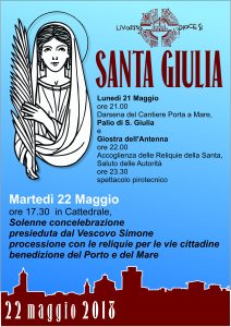 Le manifestazioni sportive Palio di S. Giulia e Giostra dell’Antenna avranno luogo Mercoledì 23 Maggio a partire dalle ore 20.30 Darsena del Cantiere Porta a Mare.