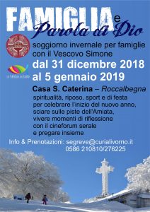 Vi propongo di aggregarvi, per quanto vi sarà possibile, al soggiorno invernale per famiglie in programma dal 31 dicembre al 5 gennaio.