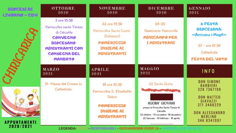 Appuntamenti ed eventi per l’anno pastorale 2020/2021: