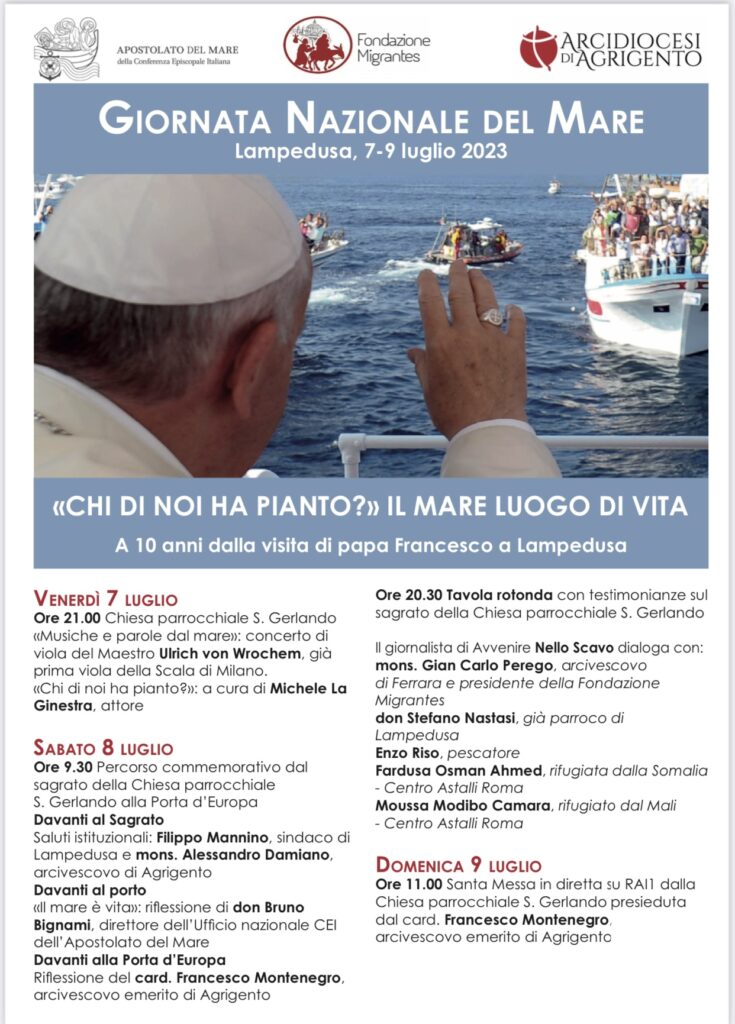 Migrantes 6 Luglio 2023 Giornata nazionale del Mare, Lampedusa dal 7 al 9 Luglio a 10anni dalla visita di Papa Francesco (clicca&leggi) Si ringrazia la Cei per i sussidi
