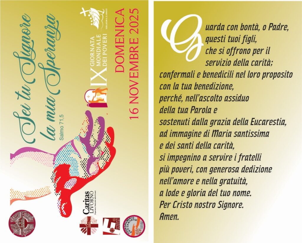 Caritas Livorno 17 Novembre 2025 Giornata Mondiale dei Poveri 2025, 16 Novembre (clicca&leggi&vediFoto eventi in diocesi e messaggio santo padre) clicca qui x resoconto giornata e foto: https://www.lasettimanalivorno.it/una-giornata-di-speranza/ clicca qui: messaggio santo padre -giornata-poveri 2025 Preghiera di benedizione dei volontari: messaggio santo padre -giornata-poveri 2025