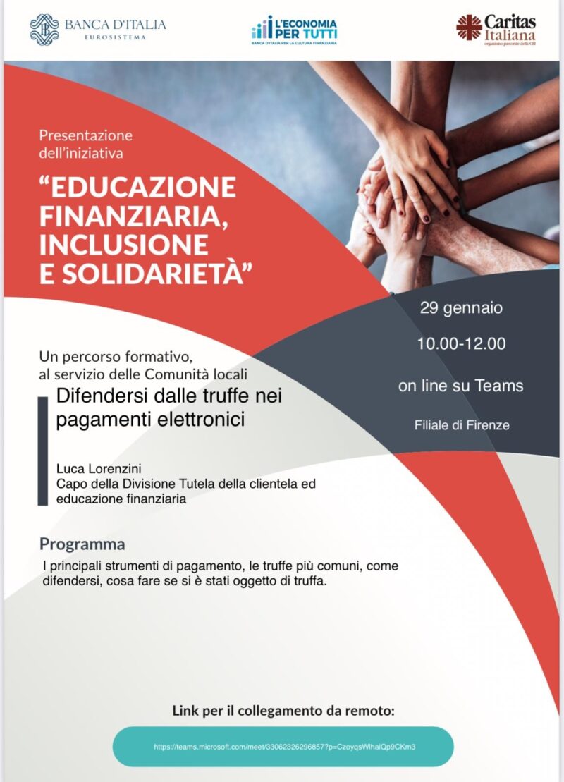 Educazione finanziaria, inclusione, solidarietà – incontri online 21, 29 Gennaio e 11 Febbraio (clicca&leggi)