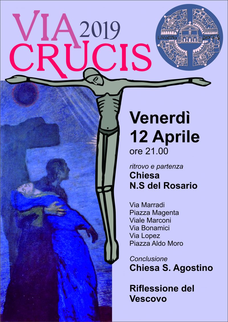 Venerdì 12 Aprile, guidata dal Vescovo Simone, Via Crucis cittadina, attraverso le strade del III Vicariato Ritrovo alle ore 21.00 alla Chiesa di N.S. del Rosario in Via Mangini Percorso: Via Marradi, Piazza Magenta, Viale Marconi, Via Bonamici, Via Lopez, Piazza Aldo Moro Conclusione alla Chiesa S. Agostino con riflessione del Vescovo Simone