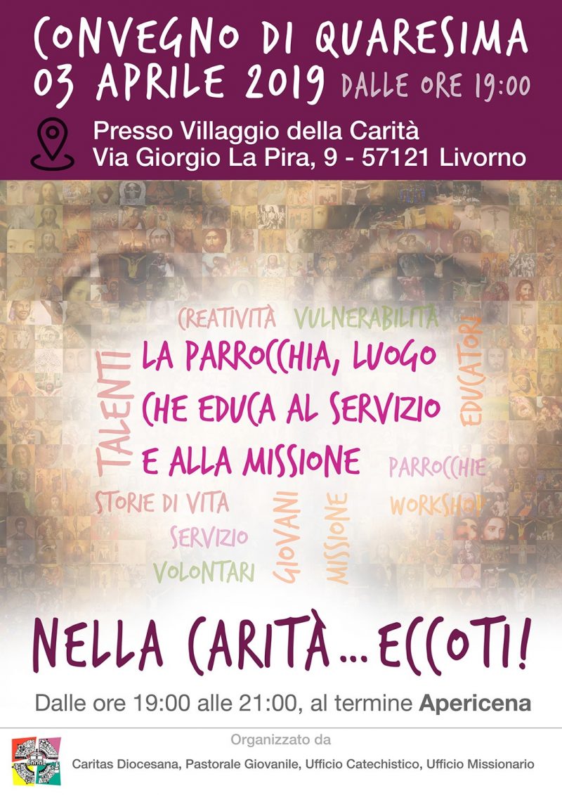 Venerdì 12 Aprile, guidata dal Vescovo Simone, Via Crucis cittadina, attraverso le strade del III Vicariato Ritrovo alle ore 21.00 alla Chiesa di N.S. del Rosario in Via Mangini Percorso: Via Marradi, Piazza Magenta, Viale Marconi, Via Bonamici, Via Lopez, Piazza Aldo Moro Conclusione alla Chiesa S. Agostino con riflessione del Vescovo Simone
