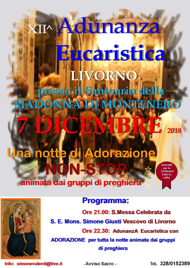 Il pellegrinaggio al Santuario di Montenero del mese di Gennaio sarà dedicato alla Vita e sarà a cura della Consulta diocesana delle Aggregazioni laicali e guidato dal Vescovo Simone Questo il programma: Sabato 19 Gennaio in Santuario alle ore 17.00 S. Rosario, ore 18.00 S. Messa presieduta dal Vescovo Simone Clicca qui scarica e leggi: messaggio della CEI per Giornata per la Vita … Continua a leggere Sabato 19 Gennaio: pellegrinaggio a Montenero “Un Rosario per la Vita”